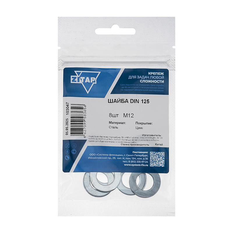 Шайба плоская М12 DIN 125 цинк. (пакет) (уп.8шт) Tech-Krep/Zitar 103047