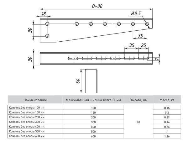 Консоль без опоры осн.300 1.5мм сталь EKF ko300-1.5 EKF