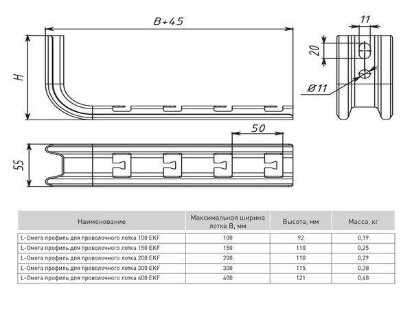 Профиль Омега для проволочного лотка L-образ. осн.200 1.5мм сталь EKF omplp200 EKF