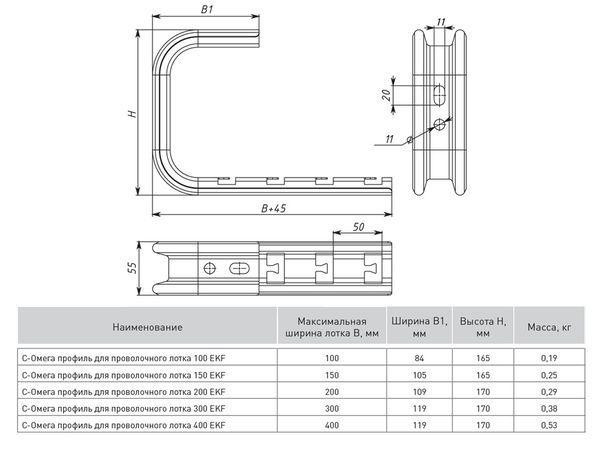 Профиль Омега для проволочного лотка С-образ. осн.200 1.5мм сталь EKF ompcp200 EKF