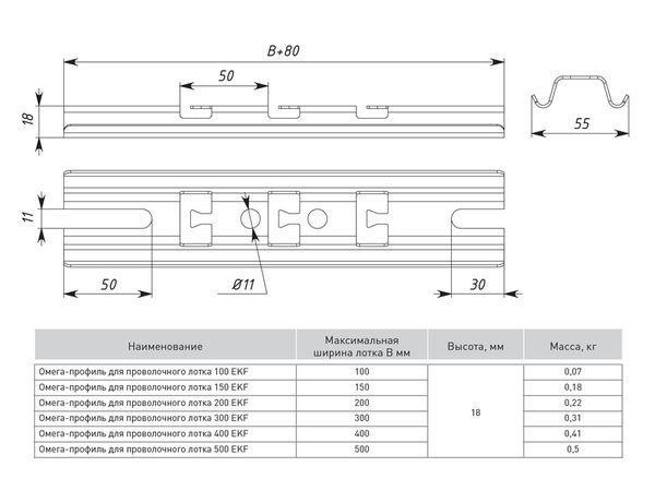 Профиль Омега для проволочного лотка осн.300 1.5мм сталь EKF ompp300 EKF