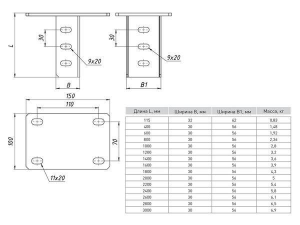 Стойка кабельная L1200 2мм EKF sk1200 EKF