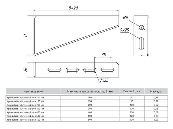 Кронштейн настенный осн.600 2мм сталь EKF kn600 EKF