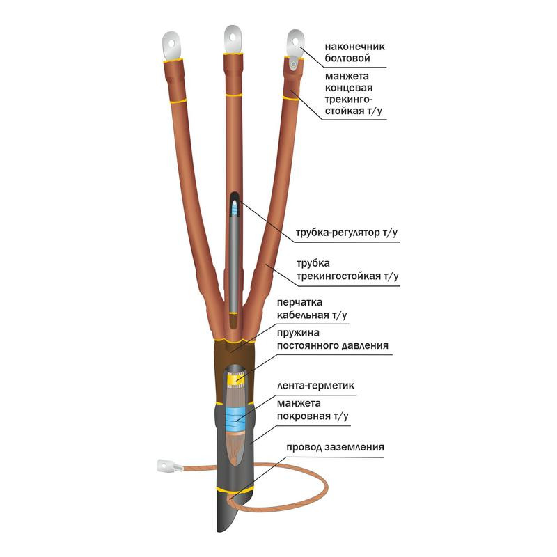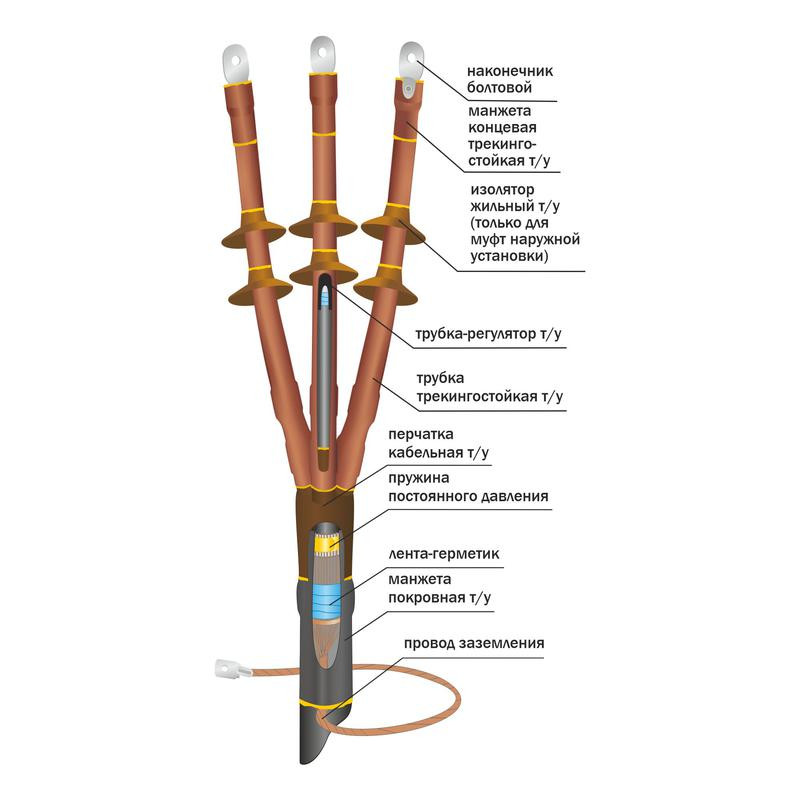 Муфта кабельная концевая наружн. установки 10кВ 10ПКНТпбН-3х(35-50)/800мм с болт. наконечн. Нева-Транс Комплект 22060013 Нева-Транс Комплект