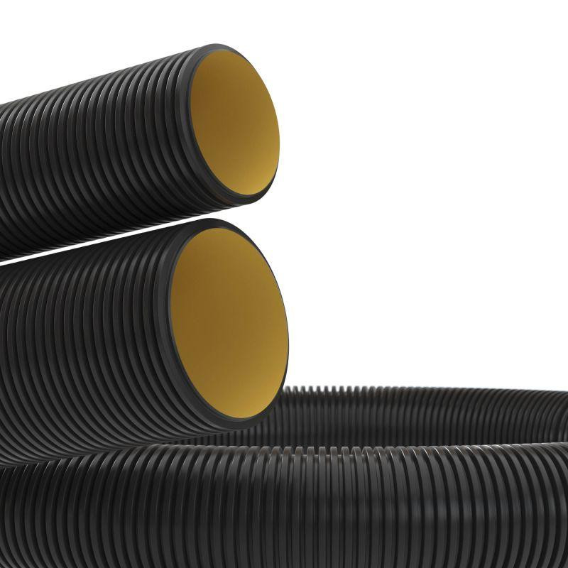 Труба гофрированная двустенная ПНД жесткая d110мм без протяжки с муфтой для открытой прокладки стойкая к УФ SN12 1030Н ПВ-0 черн. (уп.6м) DKC 170911 DKC