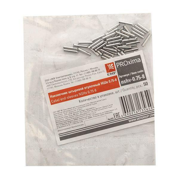 Наконечник штыревой втулочный НШв 0.75-8 (уп.50шт) PROxima EKF nshv-0.75-8 EKF