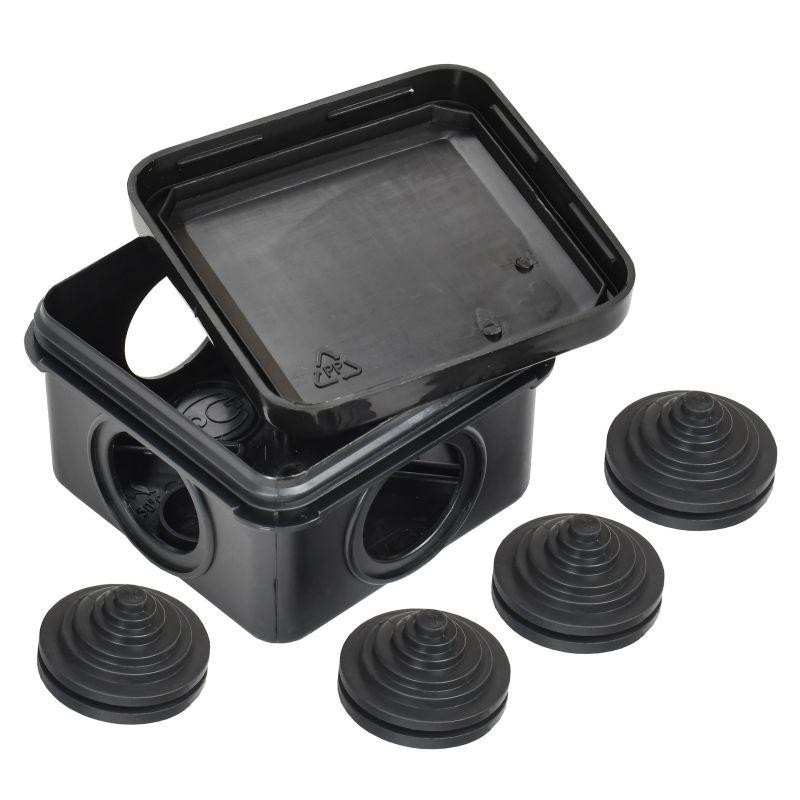 Коробка распаячная ОП 70х70х40 IP44 КМ41236 4 гермовводов черн. IEK UKO21-070-070-040-K02-44 IEK