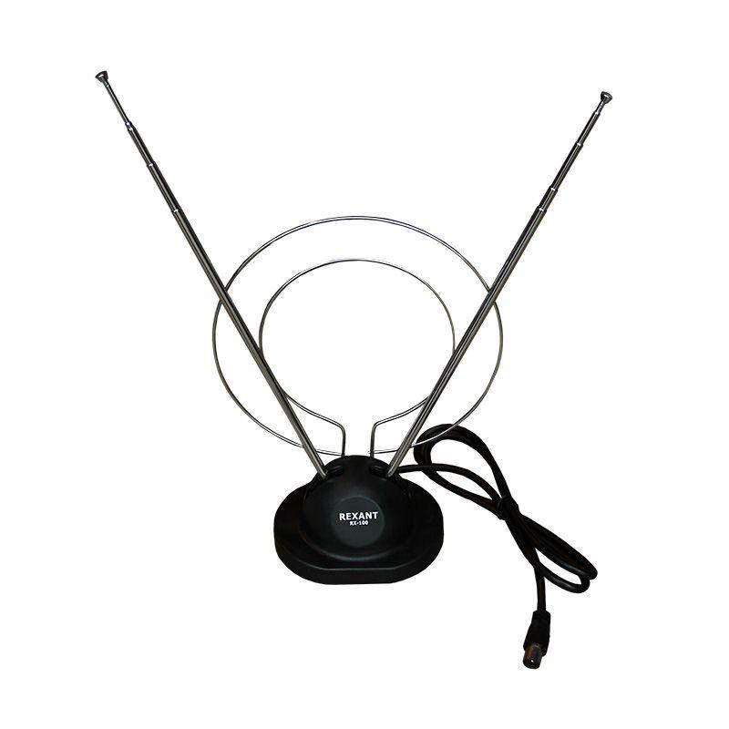 Антенна ТВ комнатная RX-100 телескопич. на подставке с кольцом VHF; UHF 47-860MHz REXANT 34-0100 Rexant