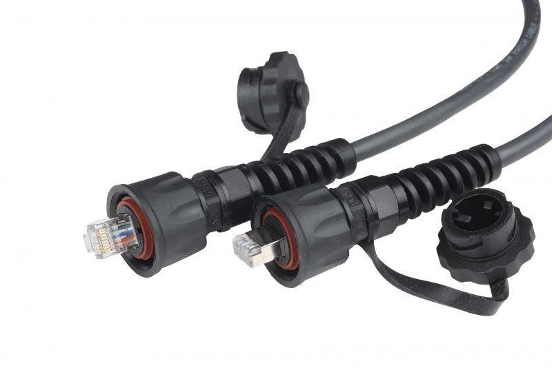 Патч-корд промышленный кат.5E F/UTP экранир. IP67 PC-IE-LPM-STP-RJ45-RJ45-C5e-10M-BK с защ. крышками 10м черн. Hyperline 46988 Hyperline