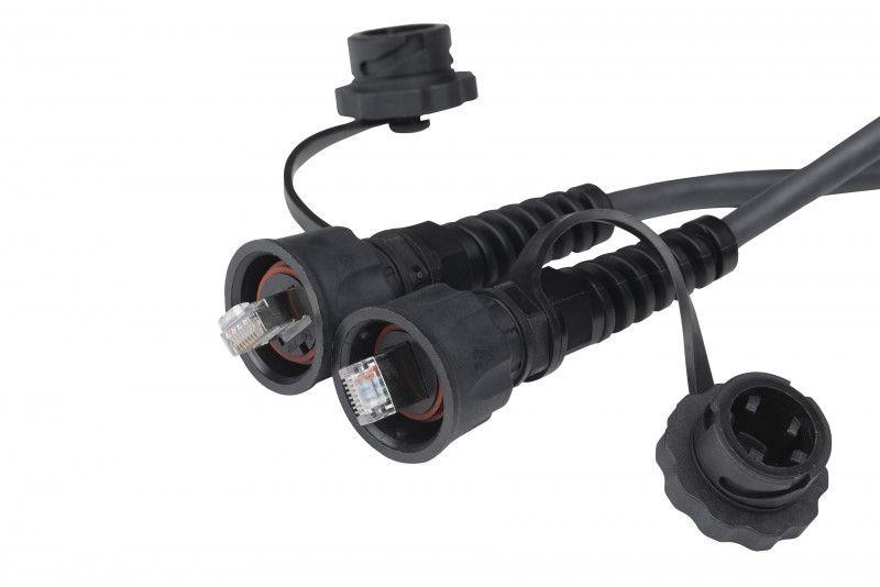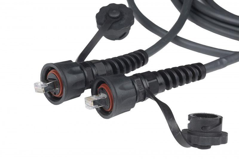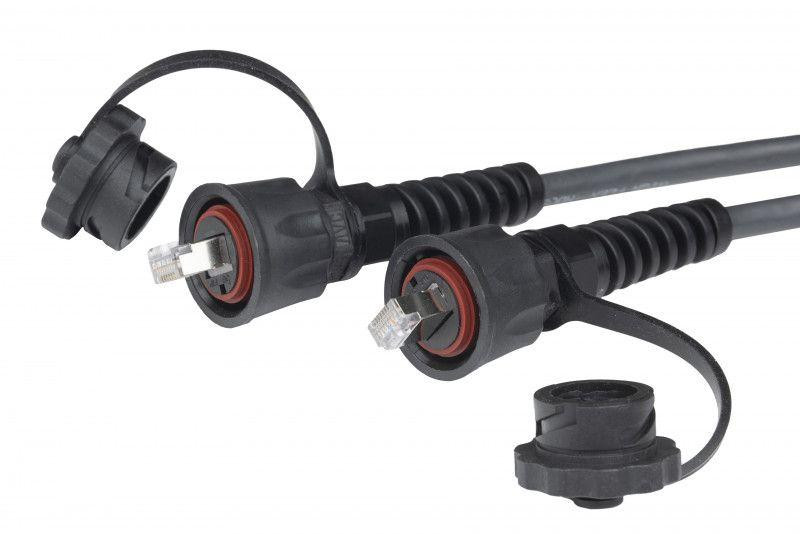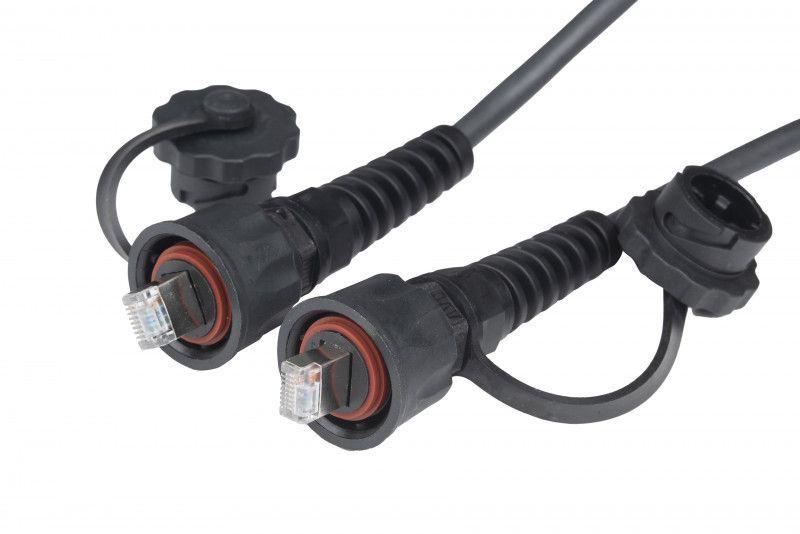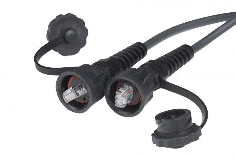 Патч-корд промышленный кат.5E U/UTP PC-IE-LPM-UTP-RJ45-RJ45-C5e-3M-BK IP67 с защ. крышками 3м черн. Hyperline 45499 Hyperline