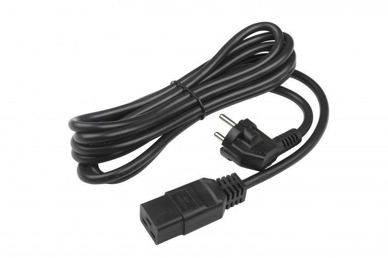 Кабель питания PWC-IEC19-SHM-3.0-BK (Schuko+C19) (3х1.5) 16А угловая вилка 3м Hyperline 43799 Hyperline