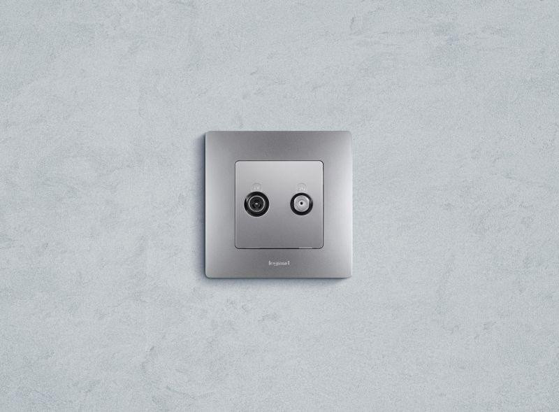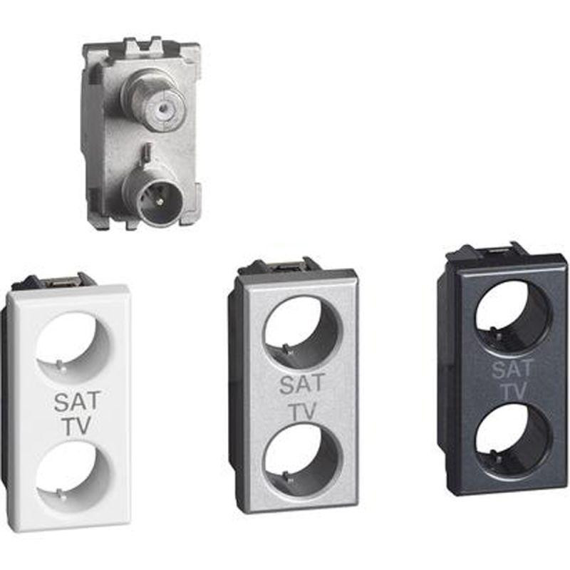 Розетка телевизионная TV/SAT 1мод. Axolute с топологией "звезда" экранир. компл. панелей: бел./алюм./антрацит Leg BTC H4214D