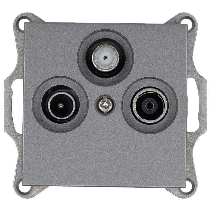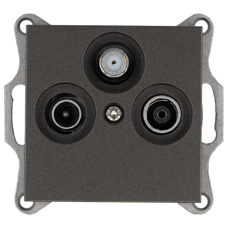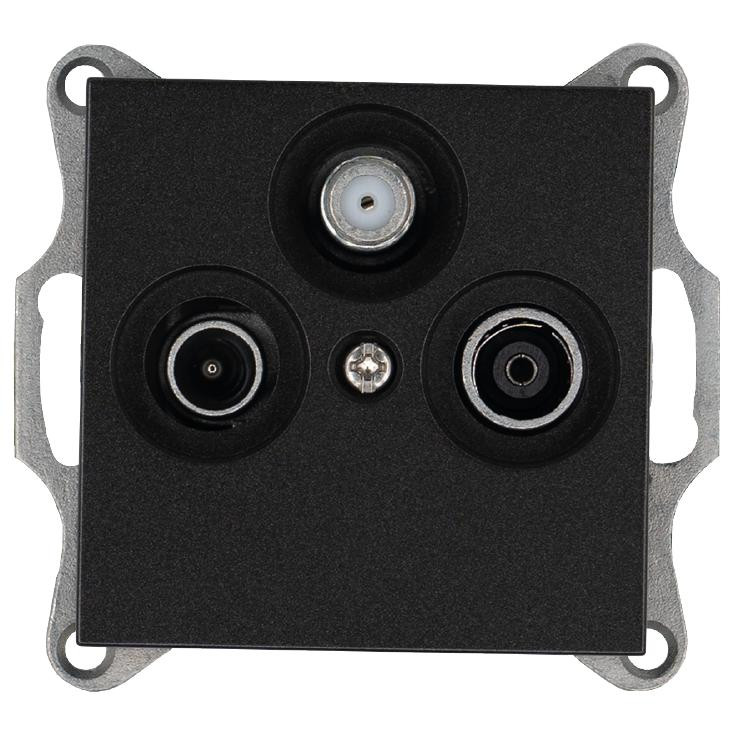 Розетка телевизионная проходная TV + FM + SAT 3-м Ф9.5мм механизм антрацит Jasmart G6207B