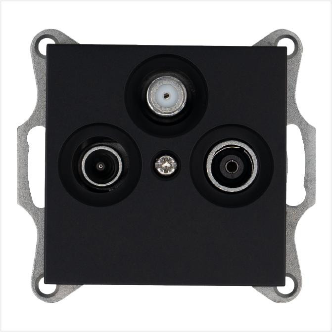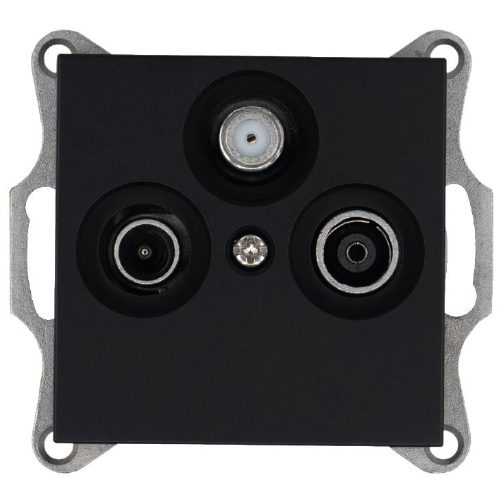 Розетка телевизионная оконечная TV + FM + SAT 3-м Ф9.5мм механизм черн. матов. soft touch Jasmart G6206PB