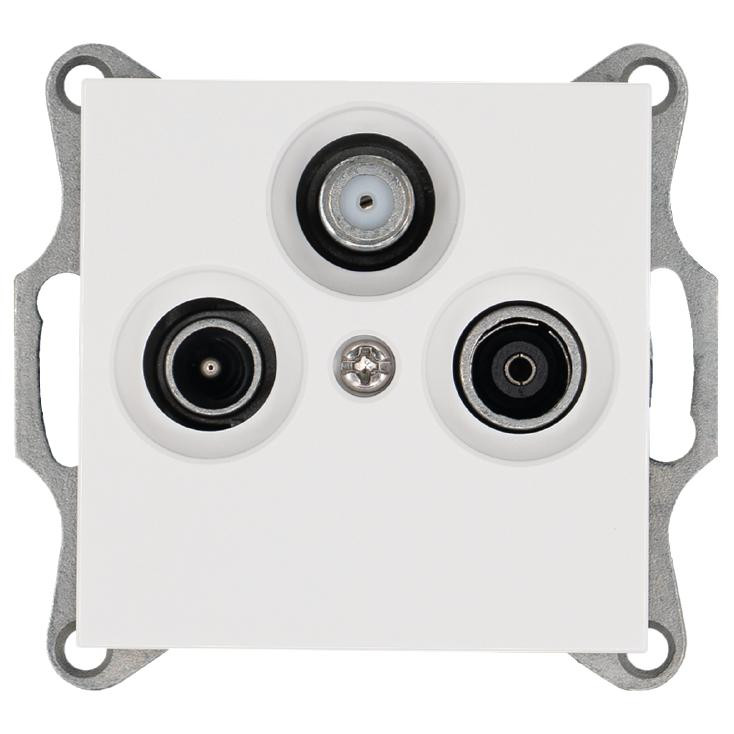 Розетка телевизионная проходная TV + FM + SAT 3-м Ф9.5мм механизм бел. глянцевый Jasmart G6207W