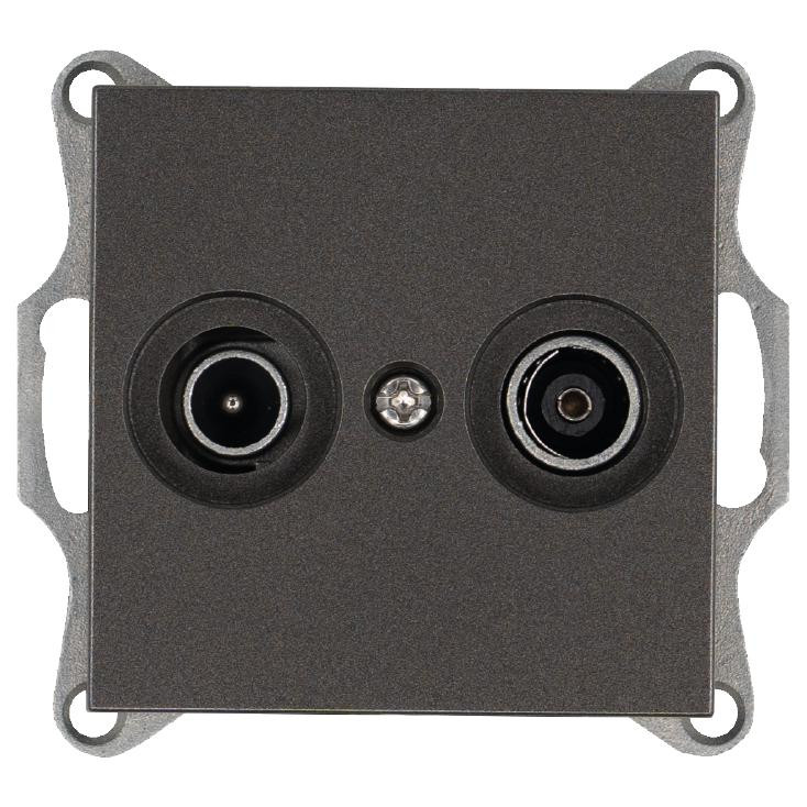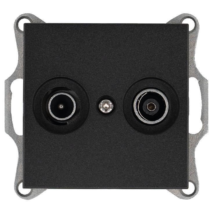 Розетка телевизионная проходная TV + FM 2-м Ф9.5мм механизм антрацит Jasmart G6205B