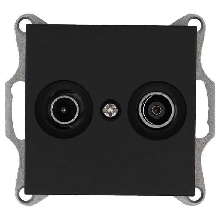 Розетка телевизионная проходная TV + FM 2-м Ф9.5мм механизм черн. матов. soft touch Jasmart G6205PB