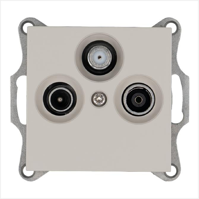 Розетка телевизионная проходная TV + FM + SAT 3-м Ф9.5мм механизм тауп Jasmart G6207T