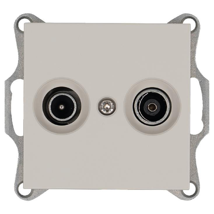 Розетка телевизионная проходная TV + FM 2-м Ф9.5мм механизм тауп Jasmart G6205T