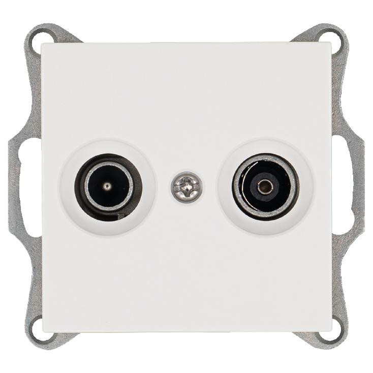 Розетка телевизионная проходная TV + FM 2-м Ф9.5мм механизм бел. глянцевый Jasmart G6205W