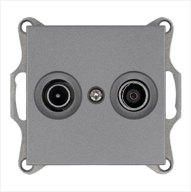 Розетка телевизионная оконечная TV + FM 2-м Ф9.5мм механизм алюм. Jasmart G6204S