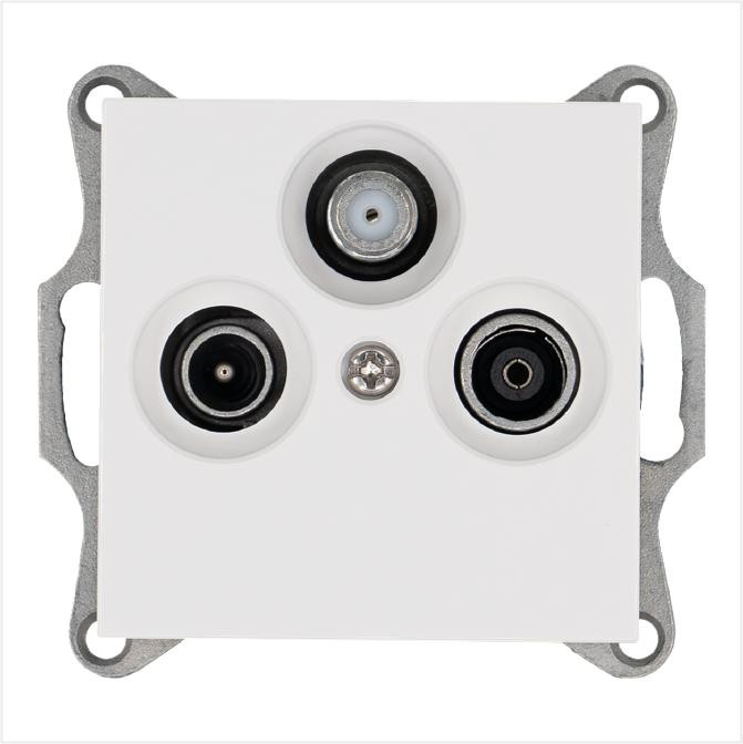 Розетка телевизионная оконечная TV + FM + SAT 3-м Ф9.5мм механизм бел. глянцевый Jasmart G6206W