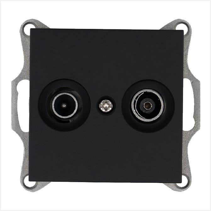 Розетка телевизионная оконечная TV + FM 2-м Ф9.5мм механизм черн. матовый soft touch Jasmart G6204PB