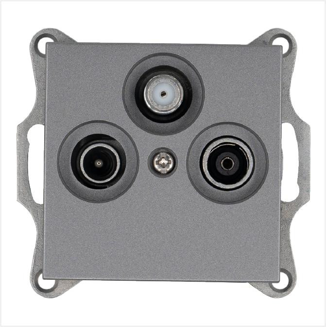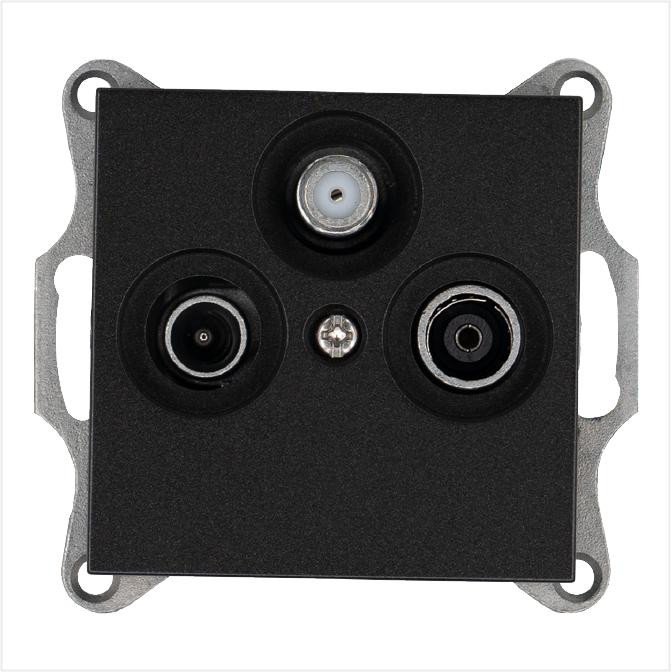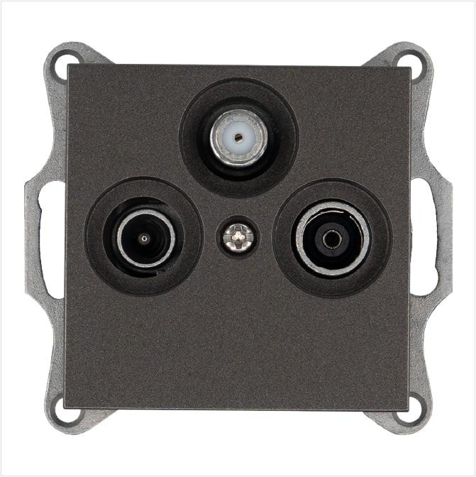 Розетка телевизионная оконечная TV + FM + SAT 3-м Ф9.5мм механизм антрацит Jasmart G6206B