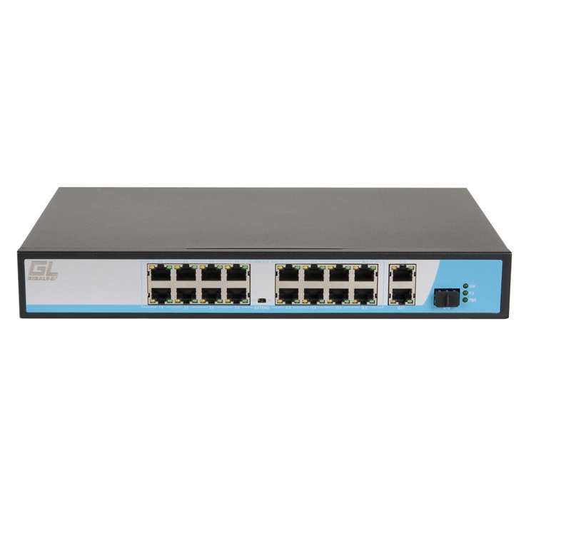 Коммутатор неуправляемый 16PoE(802.3af) порта 10/100Мбит/с до 250м cat6 2х1000Mбит/с+1хSFP 300Вт NIKOMAX GL-SW-F005-16P