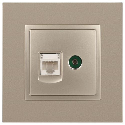 Розетка компьютерная + телевизионная Эра12 12-3110-04 RJ45 + TV IP20 шампань Эра Б0027444 Эра