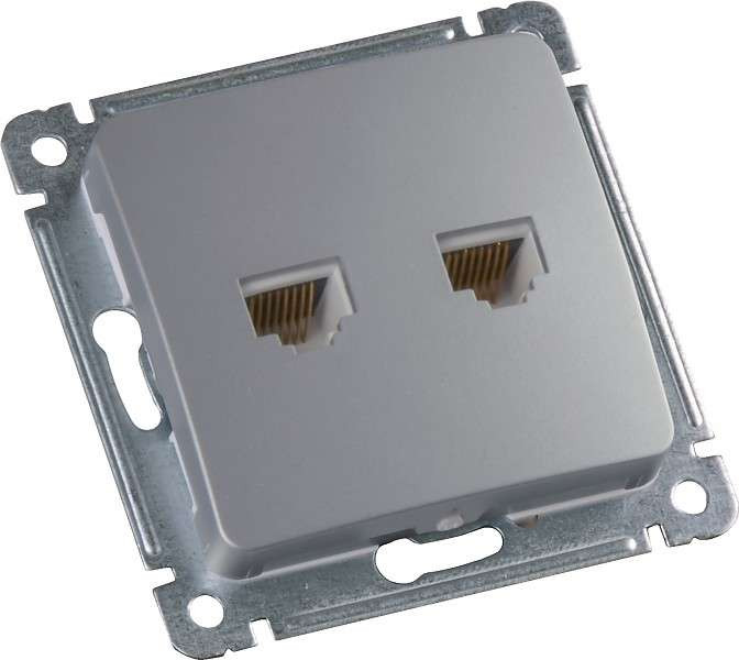 Розетка компьютерная + телефонная 2-м СП механизм серебр. HEGEL РСКТ-440-06 HEGEL