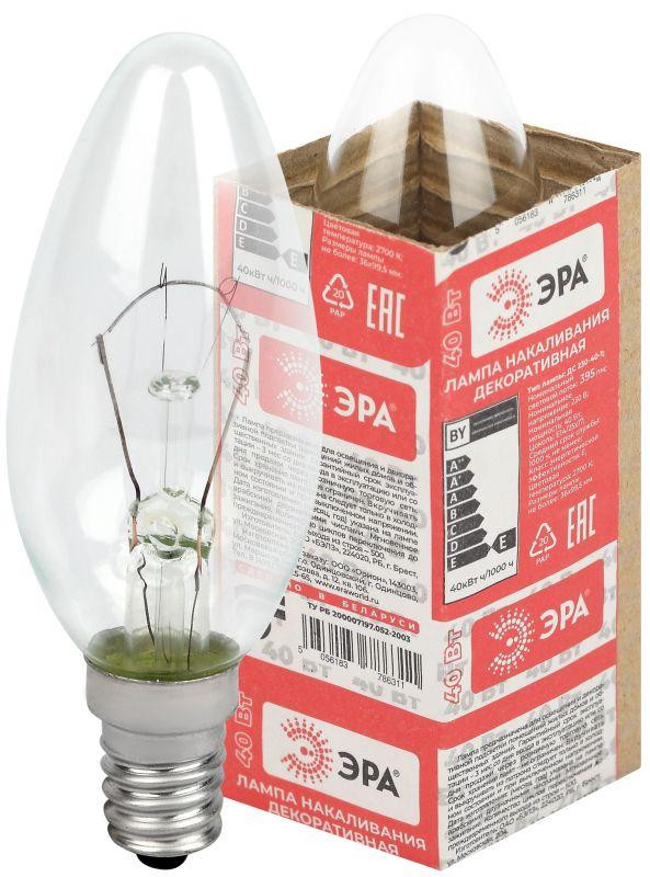 Лампа накаливания ДС 40-230-Е14 40Вт свеча (B36) 230В Е14 ЭРА Б0039125 Эра