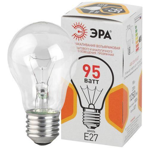 Лампа накаливания A50 95-230-Е27-CL 95Вт грушевидная Е27 230В ЭРА Б0039124 Эра