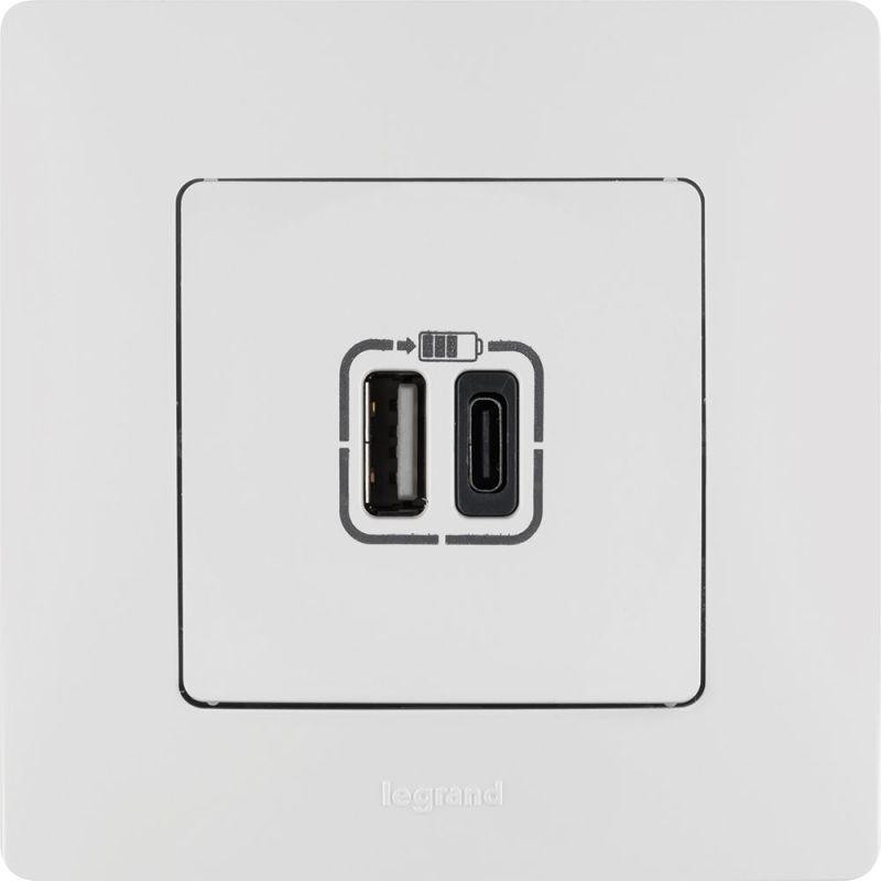 Устройство зарядное Etika с 2-мя USB разъемами A и C 240В/5В 3000мА бел. IEK 672236