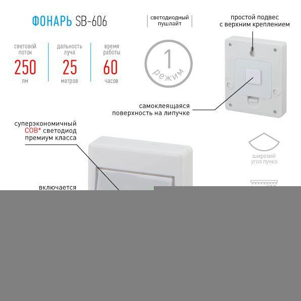 Фонарь SB-606 пушлайт кликер COB 3хAAA скотч блист. (10/60/1440) ЭРА Б0033747 Эра