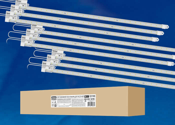 Светильник светодиодный ULY-P90-10W/SPFR/K CLEAR AC220V KIT09 10Вт IP65 600мм накладной линейный для растений спектр для фотосинтеза (уп.9шт) Uniel UL-00003852 Uniel