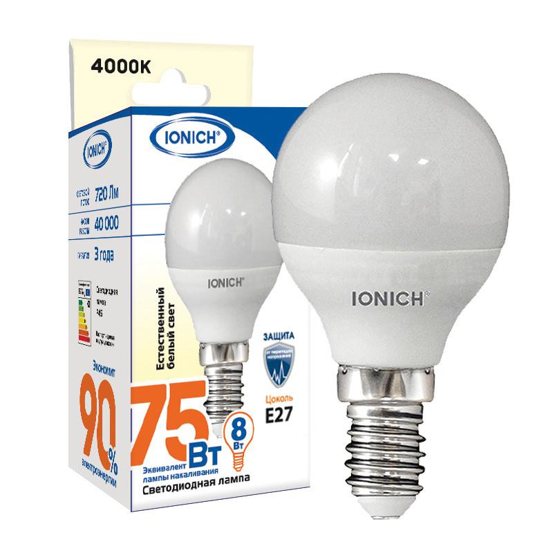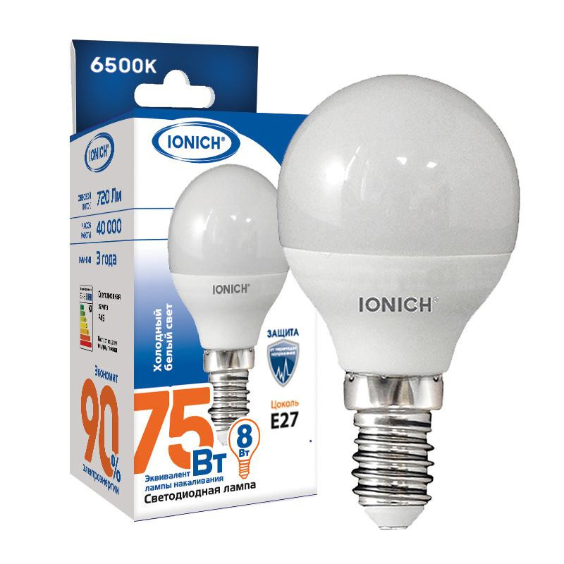 Лампа светодиодная ILED-SMD2835-G45-8-720-220-6.5-E27 (1321) IONICH 1609 IONICH