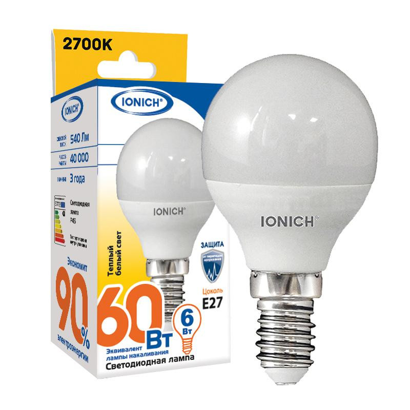 Лампа светодиодная ILED-SMD2835-G45-6-540-220-4-E27 (0158) IONICH 1542 IONICH