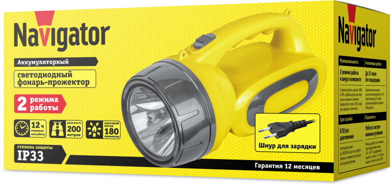 Фонарь-прожектор аккумуляторный 14 033 NPT-SP19-ACCU 3ВтLED 180лм аккум. 1.3А.ч NAVIGATOR 14033 NAVIGATOR