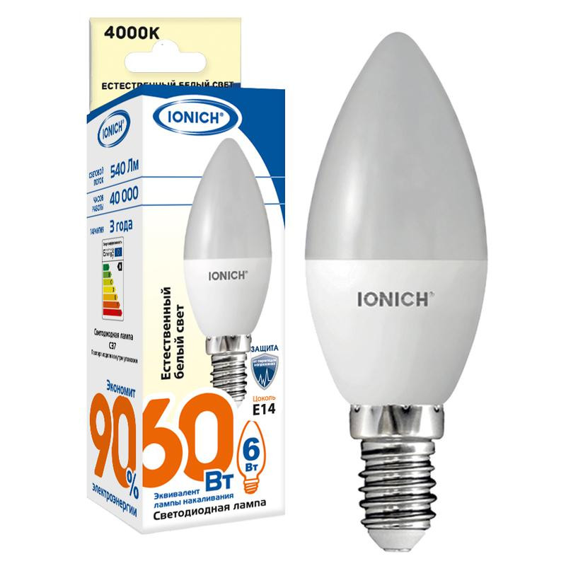 Лампа светодиодная ILED-SMD2835-C37-6-540-220-4-E14 (0160) IONICH 1529 IONICH