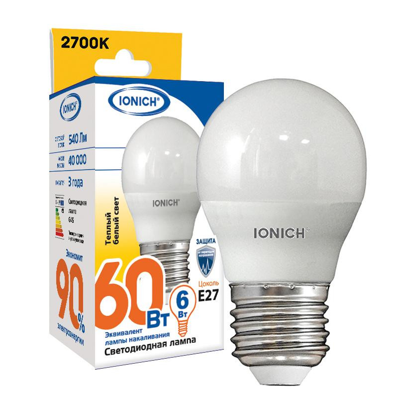 Лампа светодиодная ILED-SMD2835-G45-6-540-220-2.7-E27 (1094) IONICH 1564 IONICH