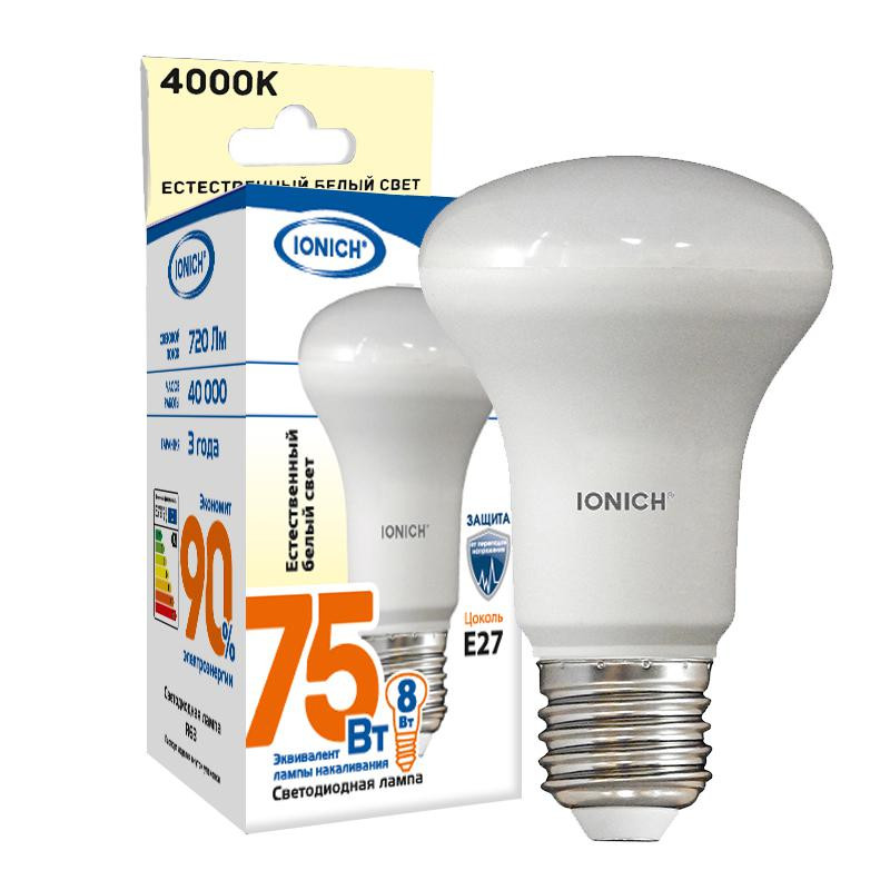 Лампа светодиодная ILED-SMD2835-R63-8-720-220-4-E27 (0170) IONICH 1528 IONICH