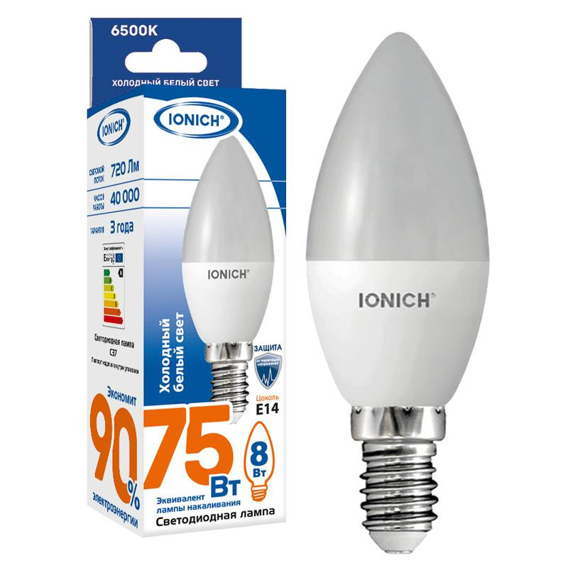 Лампа светодиодная ILED-SMD2835-C37-8-720-220-6.5-E14 (1302) IONICH 1536 IONICH