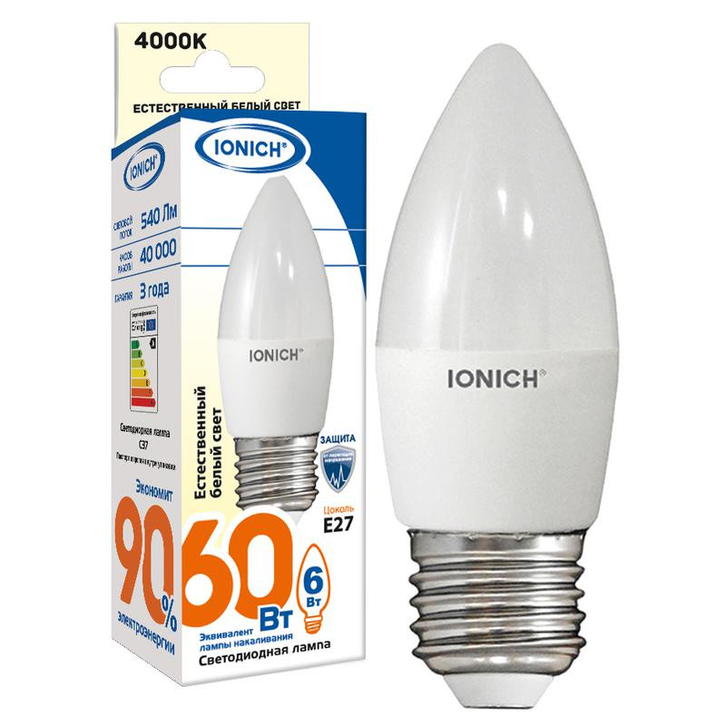 Лампа светодиодная ILED-SMD2835-C37-6-540-220-4-E27 (0162) IONICH 1532 IONICH