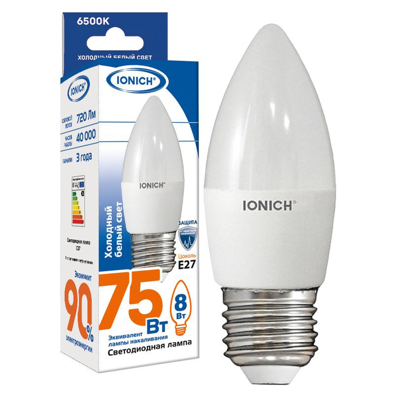 Лампа светодиодная ILED-SMD2835-C37-8-720-220-6.5-E27 (1308) IONICH 1539 IONICH