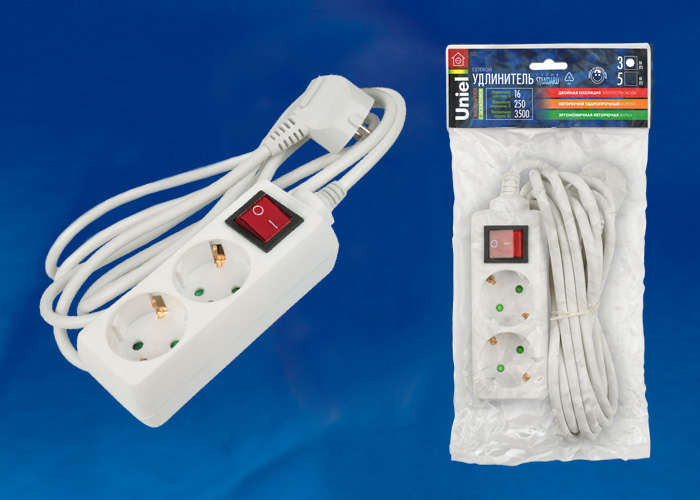 Удлинитель 2х3м с заземл. Standart S-GCD2-3B с выкл. Uniel 02915 Uniel