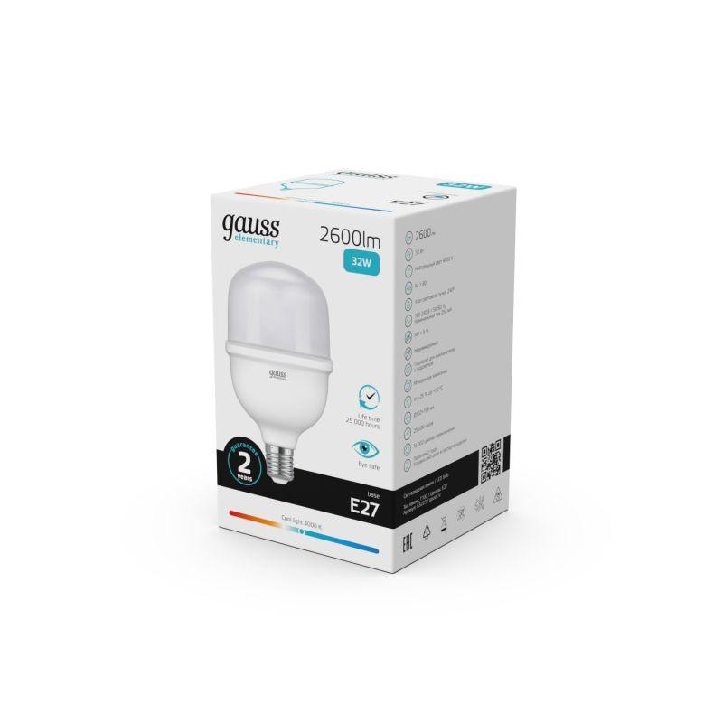 Лампа светодиодная Elementary 32Вт T100 цилиндр 4000К нейтр. бел. E27 2600лм GAUSS 63223