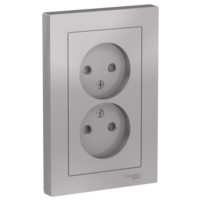 Розетка 2-м СП AtlasDesign 16А IP20 без заземл. защ. шторки в сборе алюм. SE ATN000322
