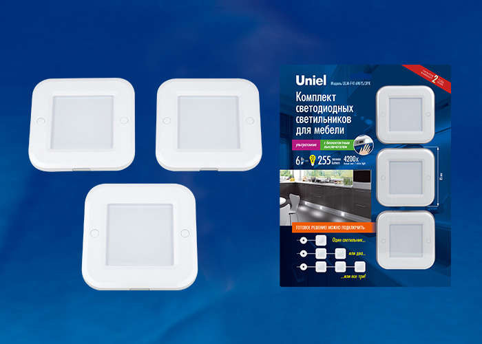 Светильник светодиодный ULM-F41-6Вт/4200К/DIM SENSOR IP20 WHITE диммер. 85х85х6.5мм бел. Uniel UL-00002888 Uniel