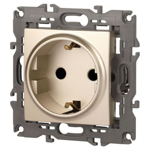 Розетка 1-м СП Эра Elegance 14-2103-04 16А IP20 16AX 250В 2P+E Schuko защ. шторки с крышкой шампань Эра Б0034281 Эра
